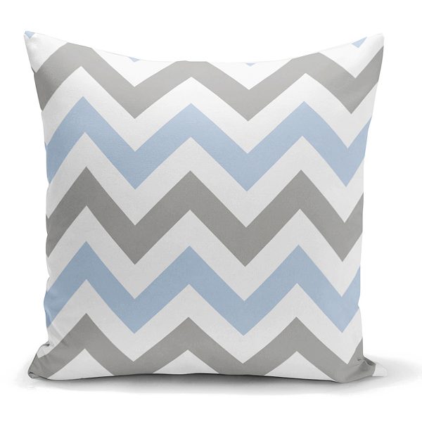 Gri Mavi Zigzag Desenli Dijital Baskılı Modern Kırlent Kılıfı