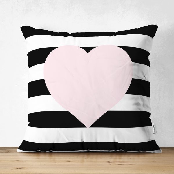 Modern Kalp Desenli Çift Taraflı Dijital Baskılı Dekoratif Süet Yastık Kırlent Kılıfı