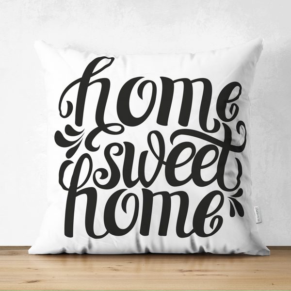 Çift Taraflı Home Sweet Home Dijital Baskılı Dekoratif Süet Yastık Kırlent Kılıfı