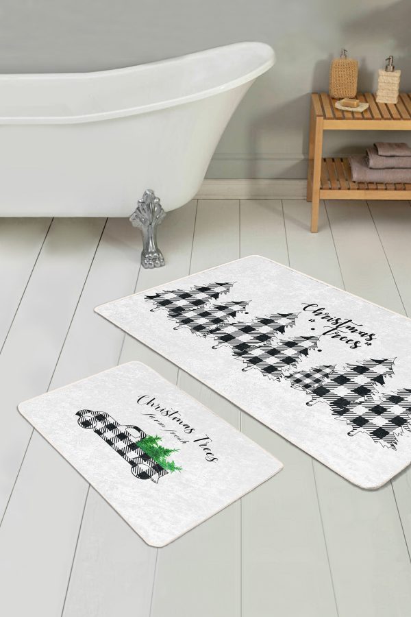 Ekose Çam Ağacı Christmas Temalı 2’li Banyo Halı Seti & Mutfak Halı Takımı