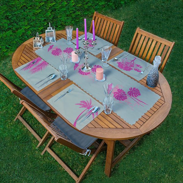 4+1 Gri Zeminde Fuşya Ağaç Motifli Amerikan Servis & Runner Seti