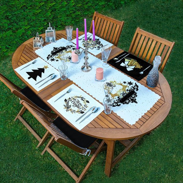 4+1 Siyah Beyaz Gold Detaylı Mery Christmas Temalı Amerikan Servis & Runner Seti