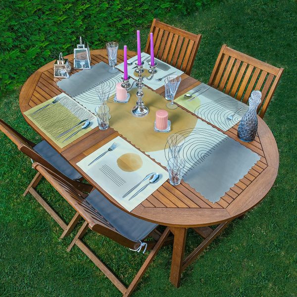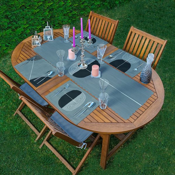 4+1 Açık Füme Renkli Onedraw Çizimli Amerikan Servis & Runner Seti