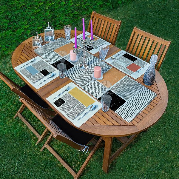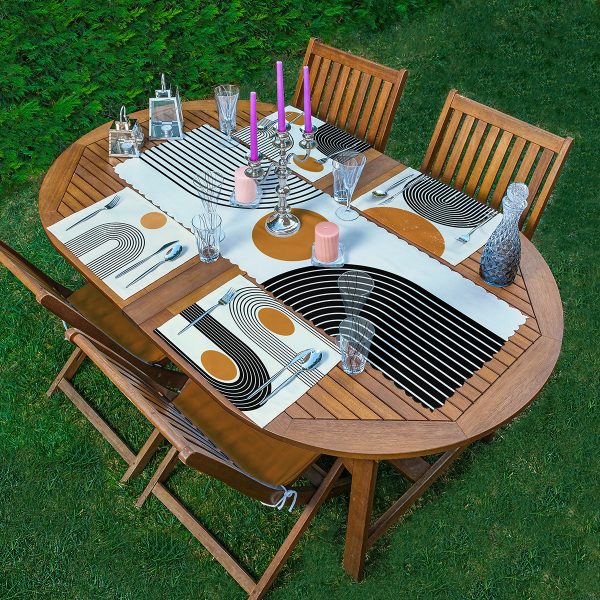 4+1 Koyu Fildişi Renkli Çizgi Tasarımlı Amerikan Servis & Runner Seti