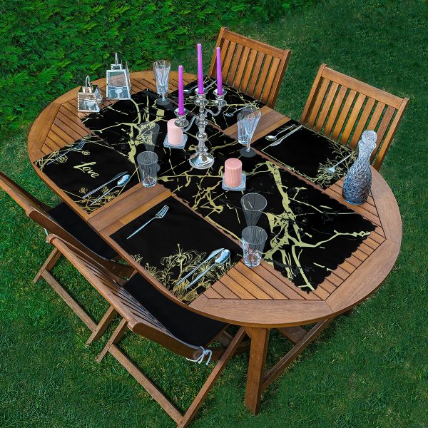 4+1 Siyah Zemin Gold Mermer Tasarımlı Amerikan Servis & Runner Seti
