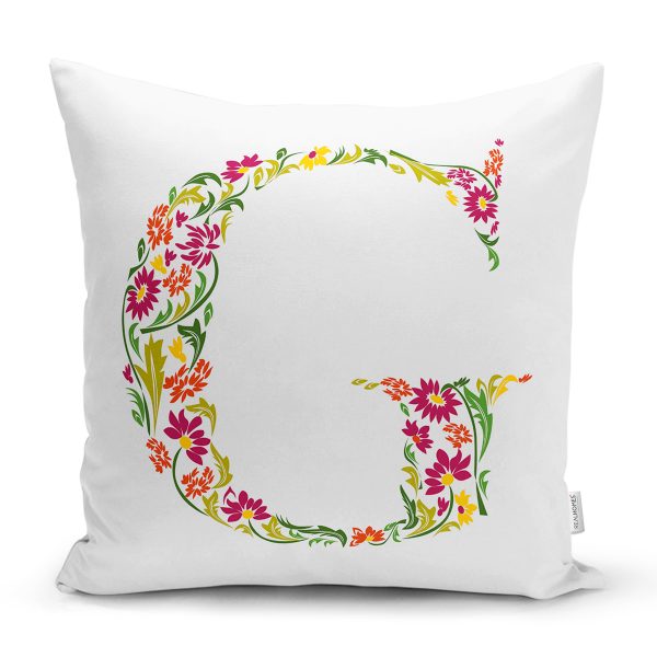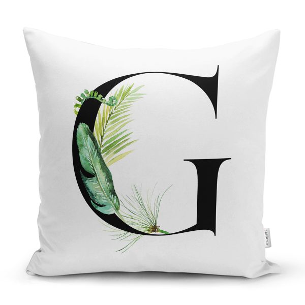 Beyaz Zemin Yaprak Temalı G Harfi Özel Tasarım Dijital Baskılı Yastık Kırlent Kılıfı