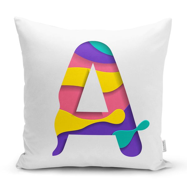 Beyaz Zemin Renkli A Harfli Özel Tasarım Dijital Baskılı Yastık Kırlent Kılıfı