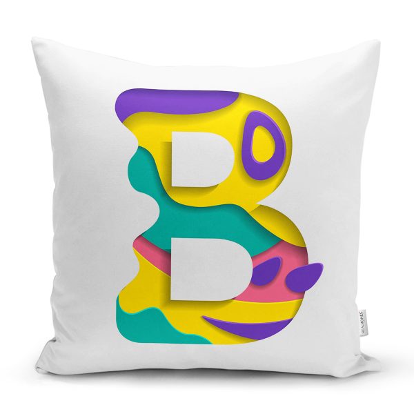 Beyaz Zemin Renkli B Harfli Özel Tasarım Dijital Baskılı Yastık Kırlent Kılıfı