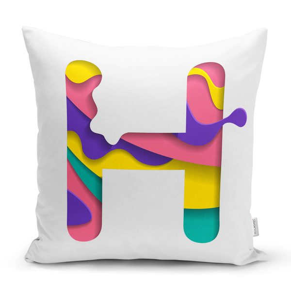 Beyaz Zemin Renkli H Harfli Özel Tasarım Dijital Baskılı Yastık Kırlent Kılıfı