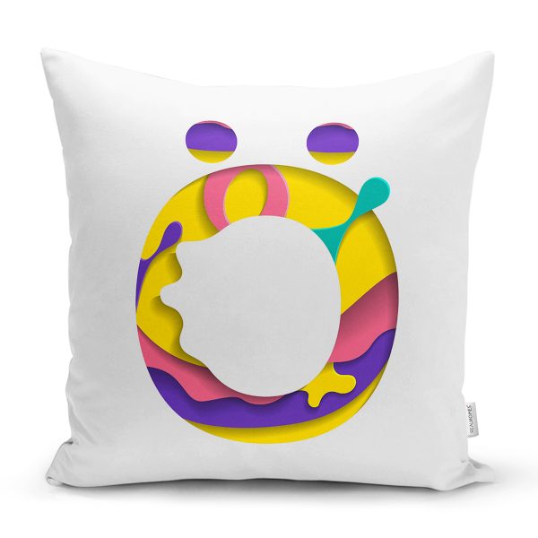 Beyaz Zemin Renkli Ö Harfli Özel Tasarım Dijital Baskılı Yastık Kırlent Kılıfı