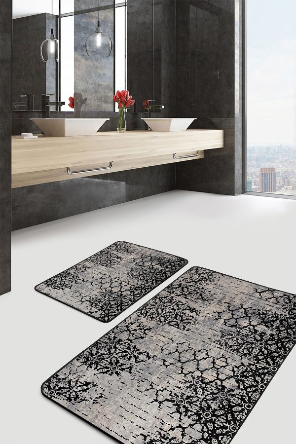 Gri Zeminde Renkli Çiçek Ve Kalp Tasarımlı Çocuk & Genç Odası Makinede Yıkanabilir Kaymaz Tabanlı Dikdörtgen Çocuk Halısı