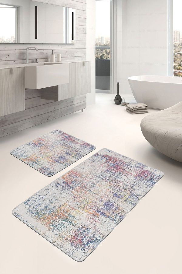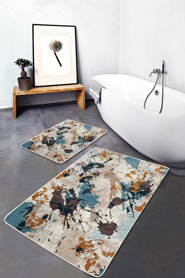 2’li Set Rengarenk Zeminde Boya Motifli Modern Sanat Desenli Modern Klasik Salon & Oturma Odası 2’li Banyo & Mutfak Paspas Takımı
