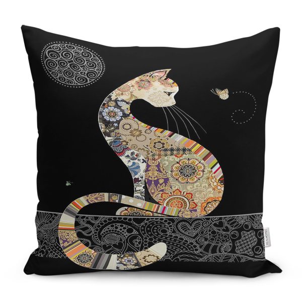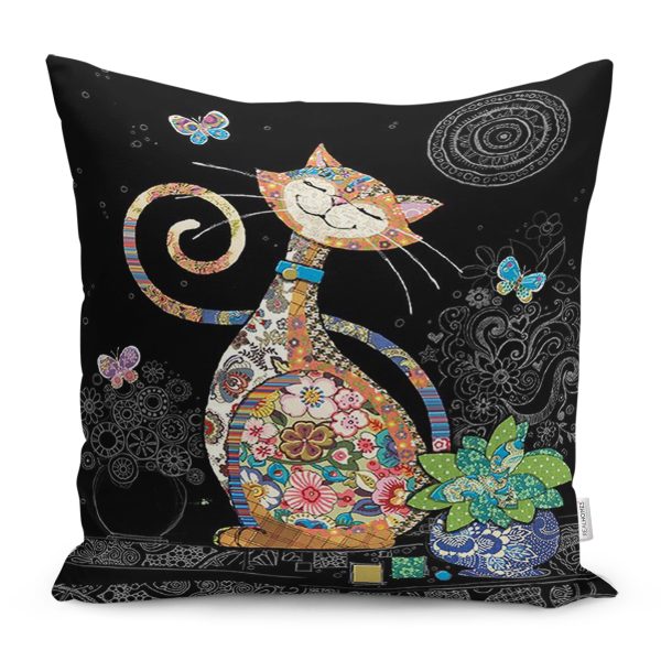 Realhomes Gri Çizgili Yıldızlı Sevimli Kediler Çocuk & Genç Odası Modern Yastık Kırlent Kılıfı