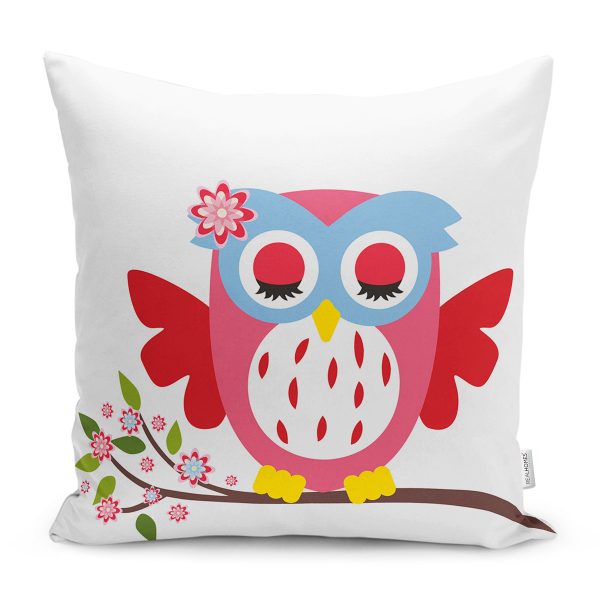 Beyaz Zemin Renkli Baykuş Tasarımlı Yastık Kırlent Kılıfı