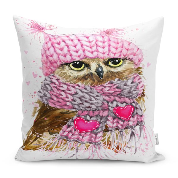 Şapkalı Baykuş Motifli Dijital Baskılı Yastık Kırlent Kılıfı