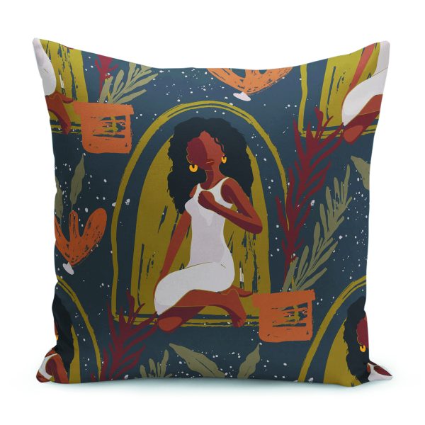 Siyahi Kadın Figürlü Etnik Temalı Özel Tasarım Yastık Kırlent Kılıfı