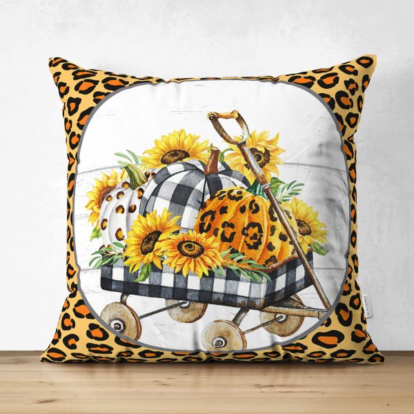 Leopar Desenli Kabak Temalı Modern Süet Yastık Kırlent Kılıfı