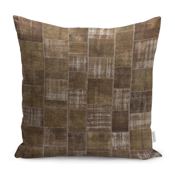 RealHomes Kahverengi Zeminde Patchwork Motifli Yöresel Desenli Dijital Baskılı Yastık Kırlent Kılıfı