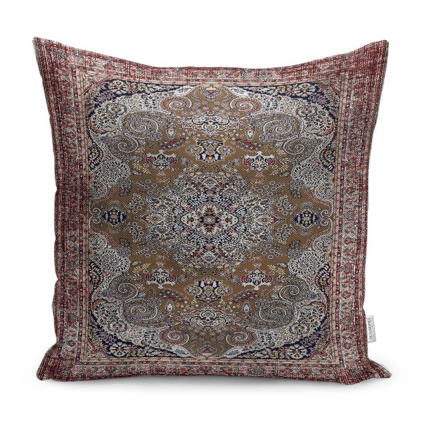 RealHomes Kahverengi Zeminde Kilim Motifli Uşak Desenli Dijital Baskılı Yastık Kırlent Kılıfı