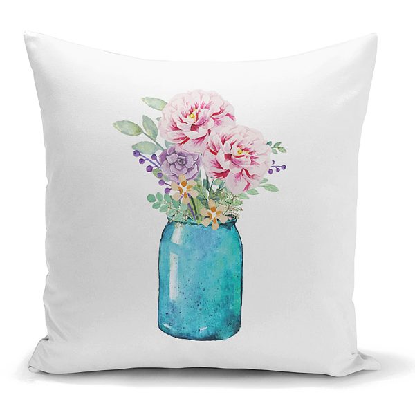 Vazo Çiçek Desenli Dijital Baskılı Yastık Kırlent Kılıfı
