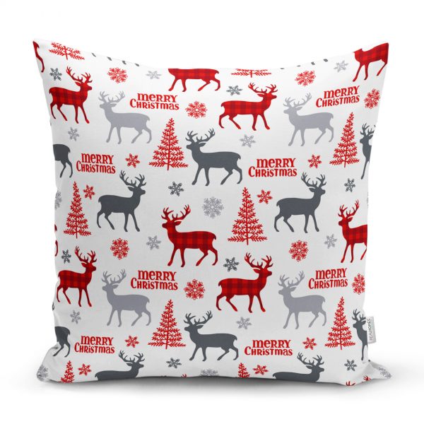 Yılbaşı Geyikleri ve Ağaçlar Baskılı Dekoratif Dikdörtgen Yastık Kırlent Kılıfı