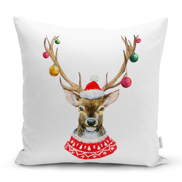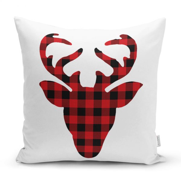 Modern Ekose Geyik Desenli Dijital Baskılı Yastık Kırlent Kılıfı