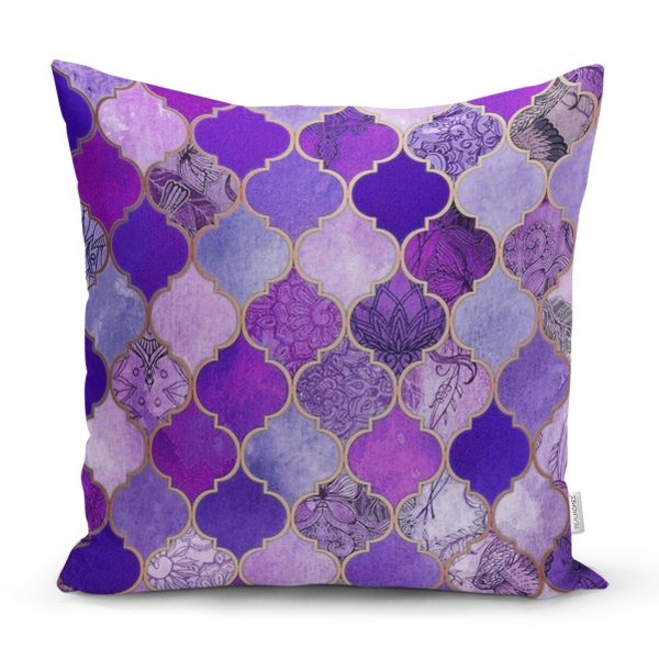Mor Renkli Ogea Desenli Özel Tasarım Dekoratif Yastık Kırlent Kılıfı