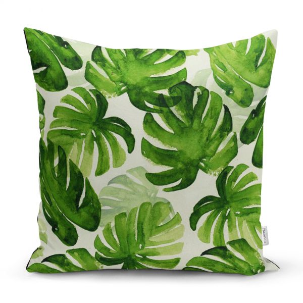 Yağlı Boya Yeşil Ağaç Motifleri Dijital Baskılı Yastık Kırlent Kılıfı