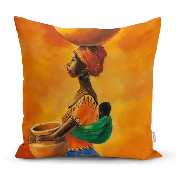 Turuncu Afrikan Women Tasarımlı Dijital Baskılı Yastık Kırlent Kılıfı