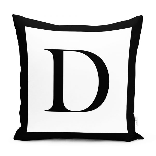 RealHomes Siyah Beyaz D Harfli Yastık Kırlent Kılıfı