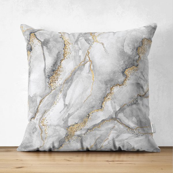 Çift Taraflı Modern Mermer Desenli Dijital Baskılı Süet Yastık Kırlent Kılıfı