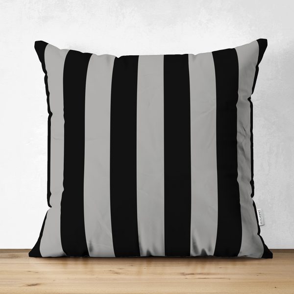 Çift Taraflı Siyah Gri Düz Çizgiler Özel Tasarımlı Dekoratif Süet Kırlent Kılıfı
