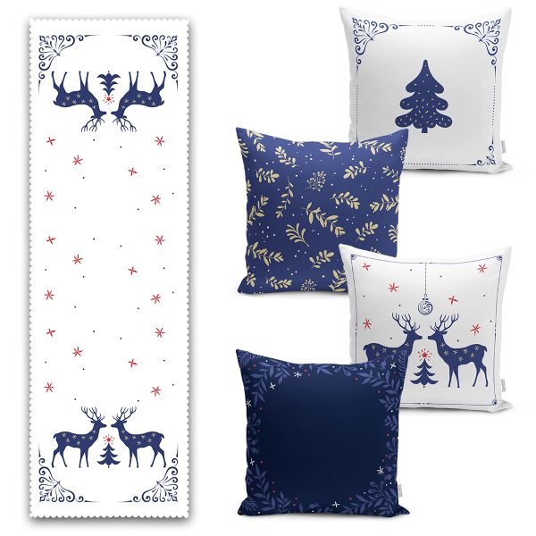 Lacivert Renkli Yılbaşı Temalı 4 Kırlent 1 Runner Seti