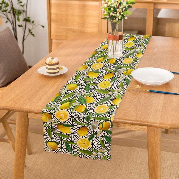 Geometrik ve Limon Desenli 3D Dijital Baskılı Özel Tasarım Runner