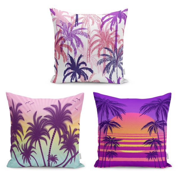 3’lü Palmiye Ağaçları Yaz Temalı Yastık Kırlent Kılıf Seti