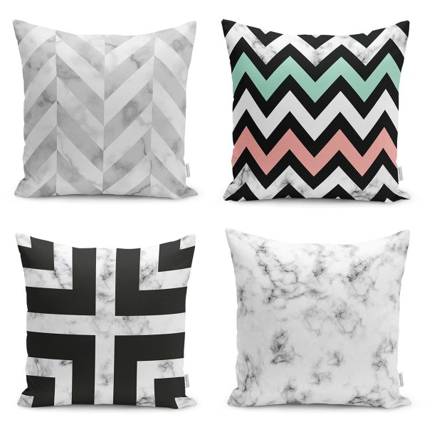 4’lü Mermer Zeminli Geometrik Çizimli Yastık Kırlent Kılıf Seti