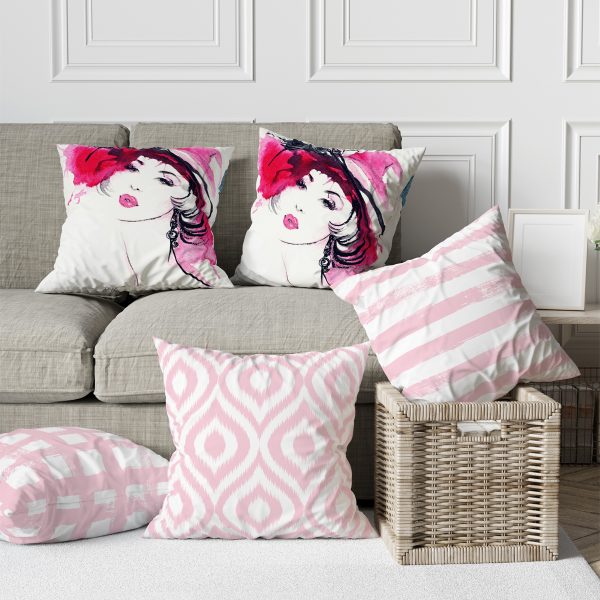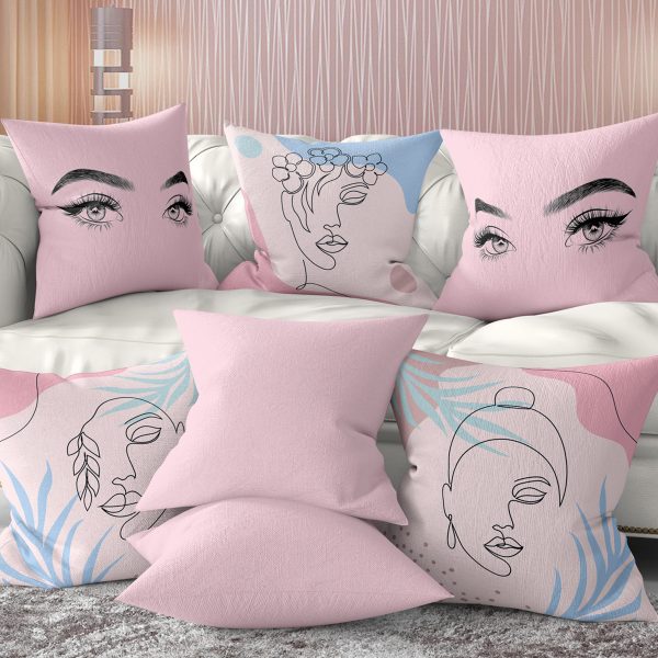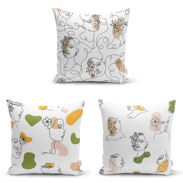 3’lü Beyaz Zemin Üzerinde Onedraw Çizimli Bayan Silüeti Modern Yastık Kırlent Kılıf Seti