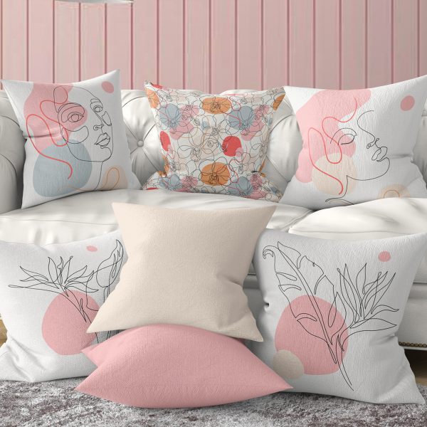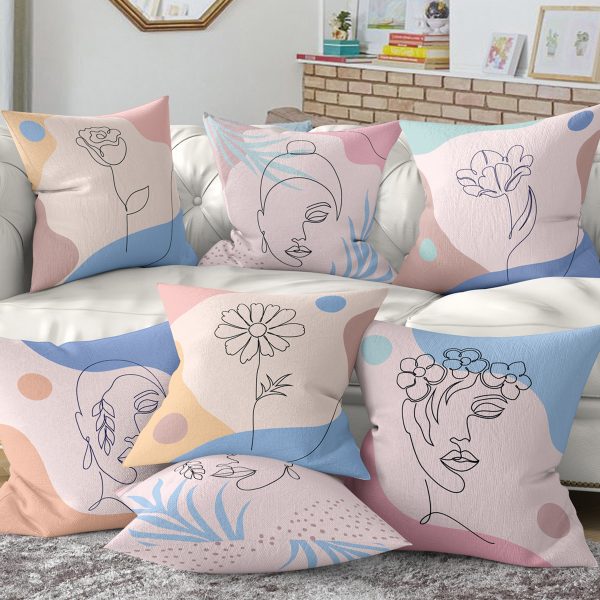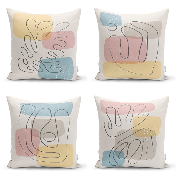 4’lü Renkli Zemin Üzerinde Onedraw Çizimli Modern Yastık Kırlent Kılıf Seti