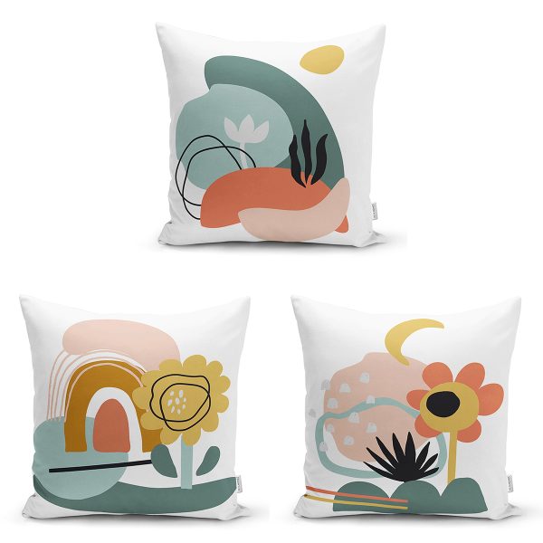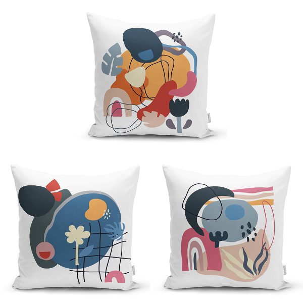 3’lü Beyaz Zemin Üzerinde Renkli Onedraw Çizimli Modern Yastık Kırlent Kılıf Seti