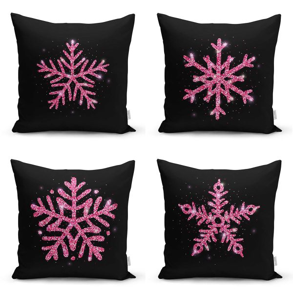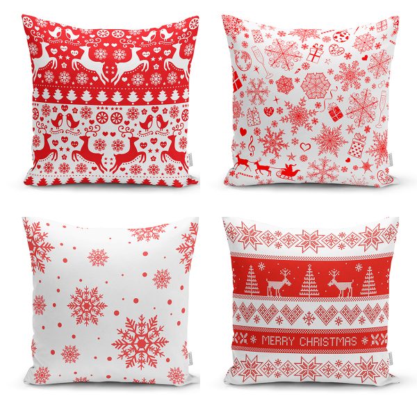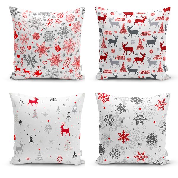 Realhomes Beyaz Zeminli Yılbaşı Konseptli 4’lü Yastık Kırlent Kılıfı