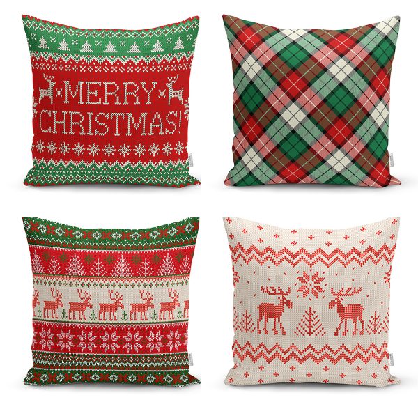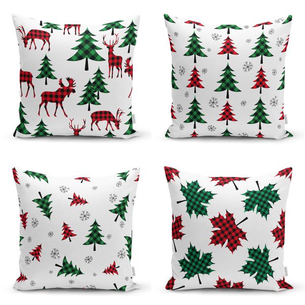 4’lü Ekose Desenli Çam Ağacı Motifli Yılbaşı Konsept Modern Yastık Kırlent Kılıfı