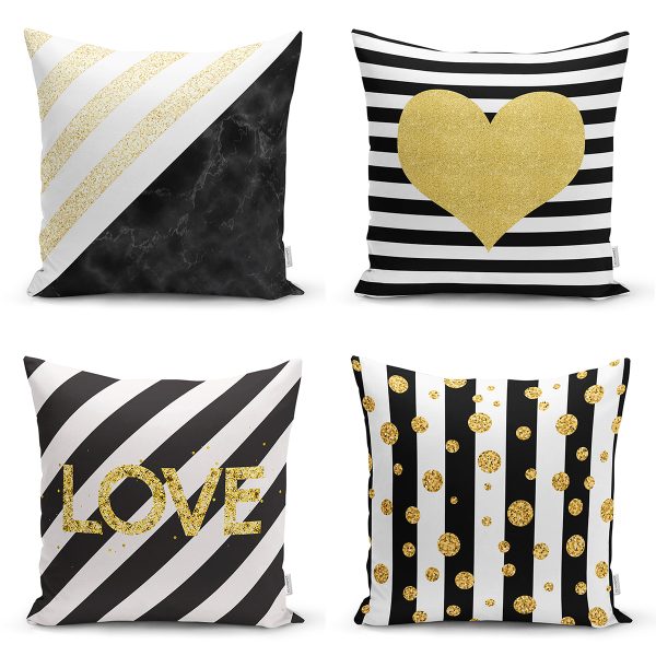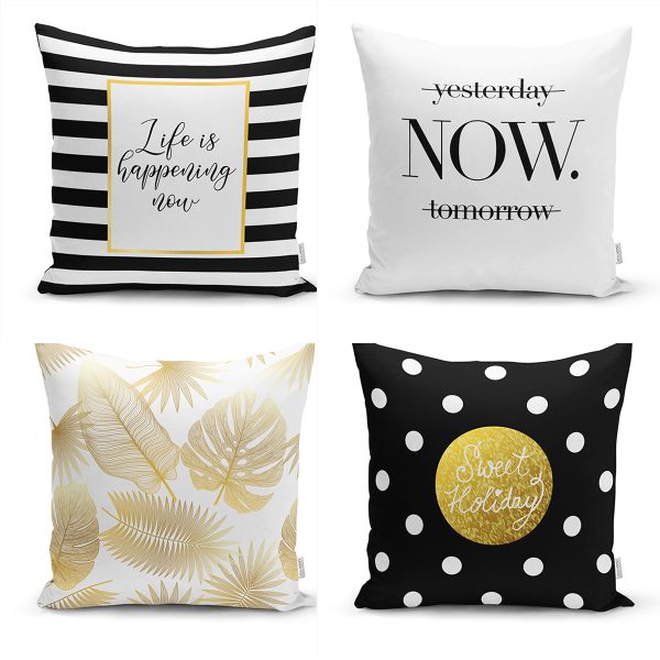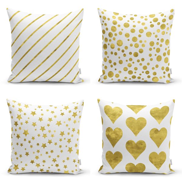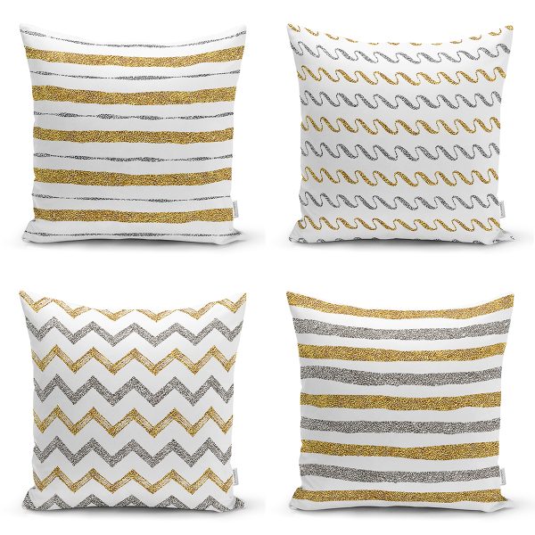 4’lü Beyaz Zemin Üzerinde Gold Detaylı Modern Yastık Kırlent Kılıf Seti