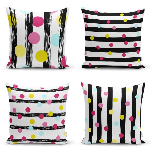 4’lü Renkli Puantiye Motifli Dijital Baskılı Modern Yastık Kırlent Kılıf Seti
