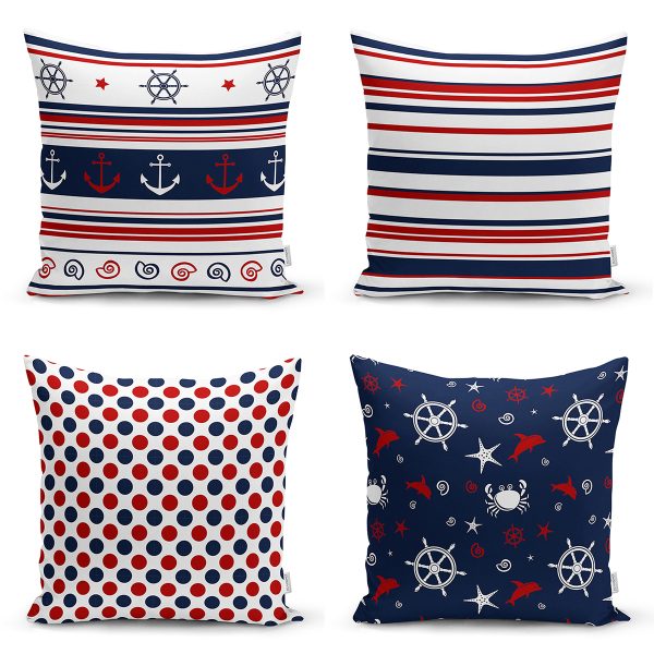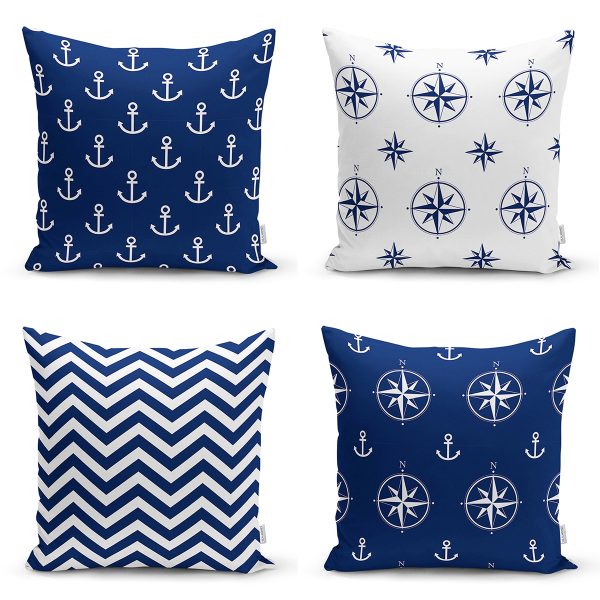 4’lü Çapa ve Pusula Tasarımlı Dijital Baskılı Dekoratif Yastık Kırlent Kılıfı Seti