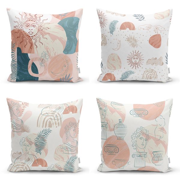 4’lü Bohem Tasarımlı Dijital Baskılı Dekoratif Yastık Kırlent Kılıfı Seti