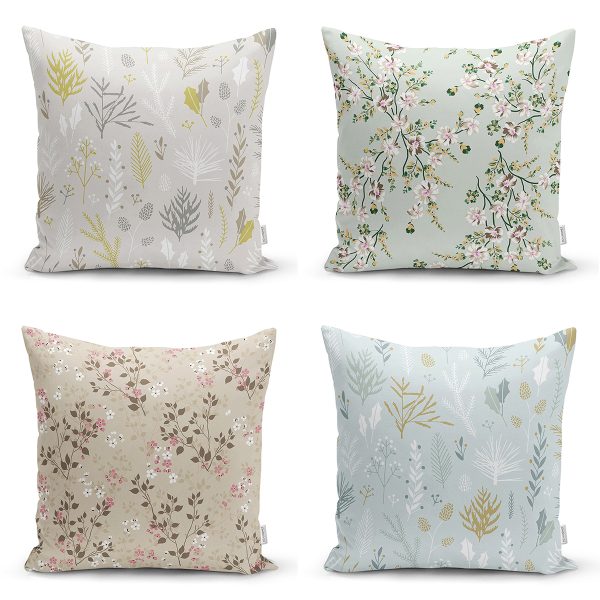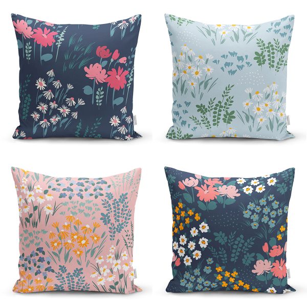 4’lü Rengarenk Zemin Üzerinde Çiçek Desenli Modern Yastık Kırlent Kılıf Seti