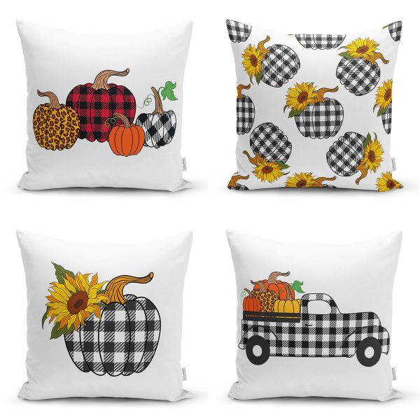 4’lü Ekoseli Kabak Desenli Dijital Baskılı Kombin Yastık Kırlent Kılıfı