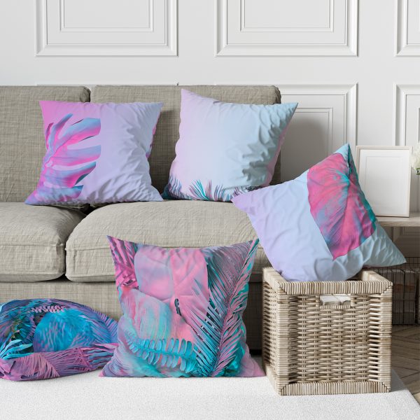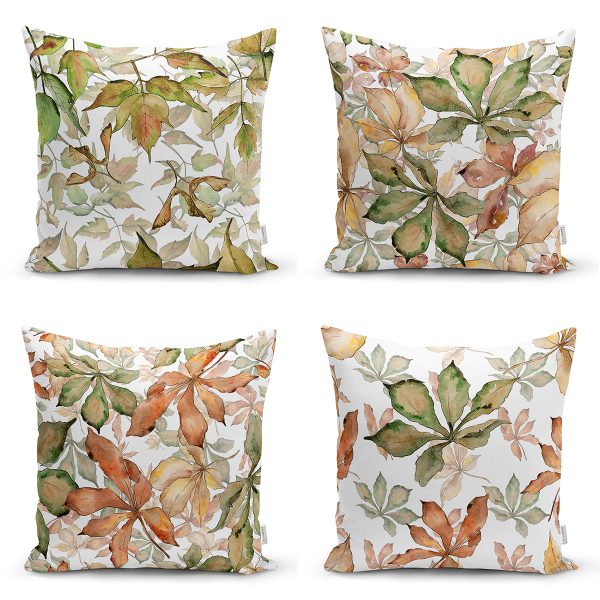 4’lü Renkli Zemin Üzerinde Yaprak Desenli Modern Yastık Kırlent Kılıf Seti
