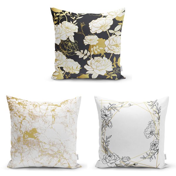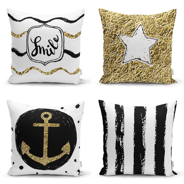 4’lü Beyaz Zemin Üzerinde Gold Detaylı Modern Yastık Kırlent Kılıf Seti
