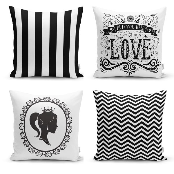 Realhomes Siyah Beyaz Renkli Dekoratif 4’lü Yastık Kırlent Kılıfı